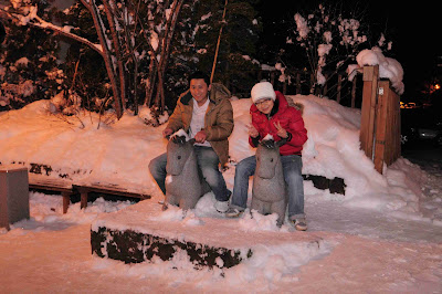 吃飽Buffet後 我跟大樹和媽媽 一起出去探險了 因為媽媽第一次看到雪 所以小玩了一下喔